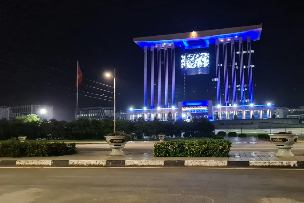 Tuyến đường trước cổng Trung tâm hành chính tập trung tỉnh Bình Dương vắng lặng, không một bóng người.