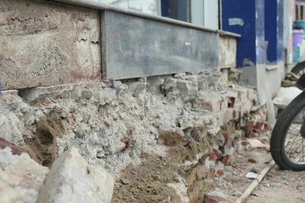 Gạch đá lổm nhổm, phần bị đập cao tới vài chục cm