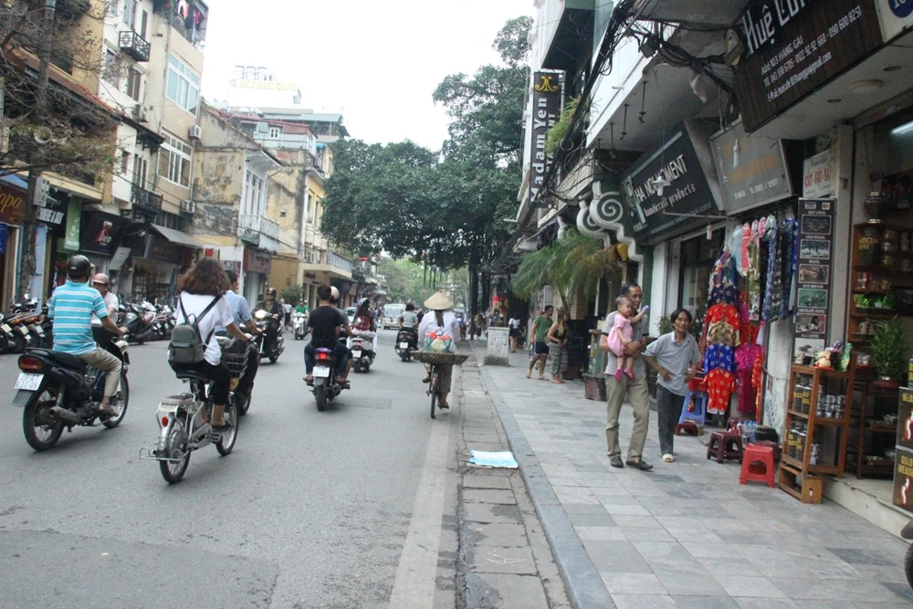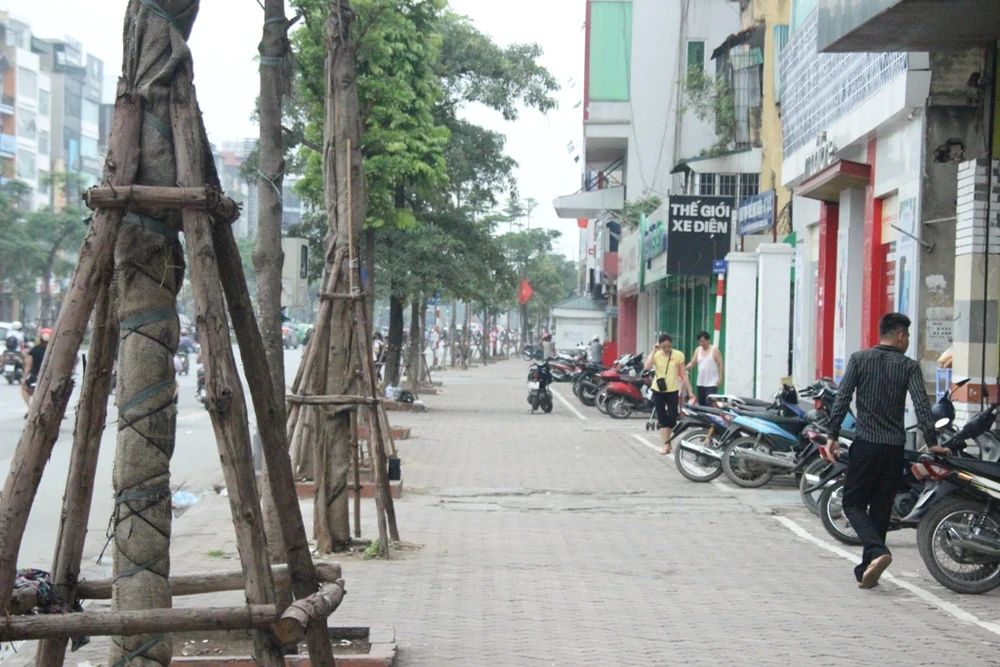 Tuy nhiên, tại một số tuyến phố, tình trạng lấn chiếm vỉa hè để kinh doanh vẫn còn. Người đi bộ vẫn bị "tranh" mất vỉa hè của mình.