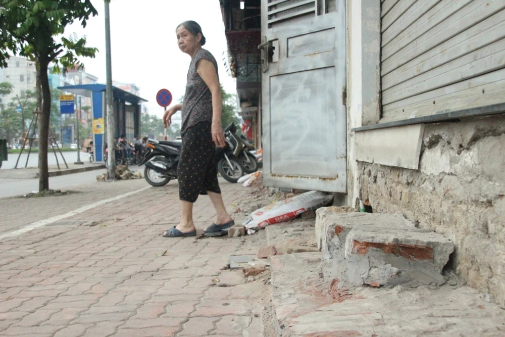 Nhiều căn nhà sau khi bị phá tam cấp đã cao hơn mặt đường tới cả mét
