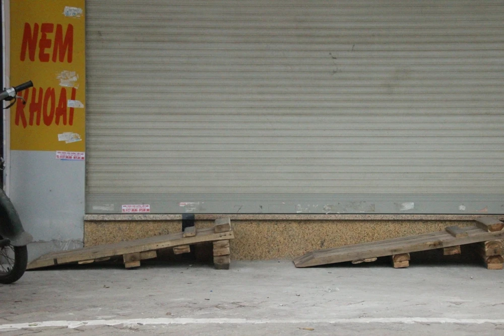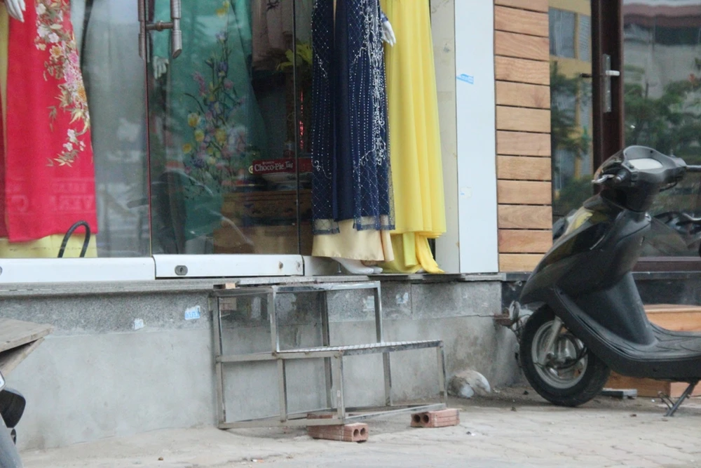 Nhiều hộ chỉ dùng các bao cát hoặc đất tạm thời làm lối lên xuống. Hình ảnh này khiến các tuyến phố khá nhếch nhác.