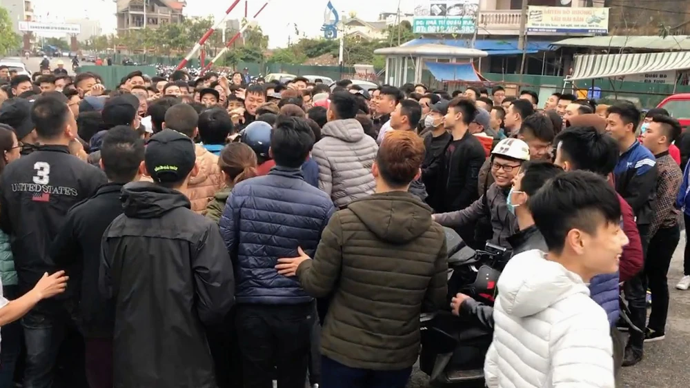 Đám đông tập trung trước vòng xoay ngã tư Quán Mau hết sức hỗn loạn.