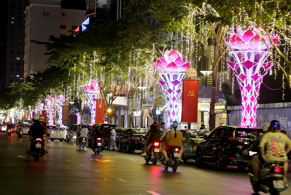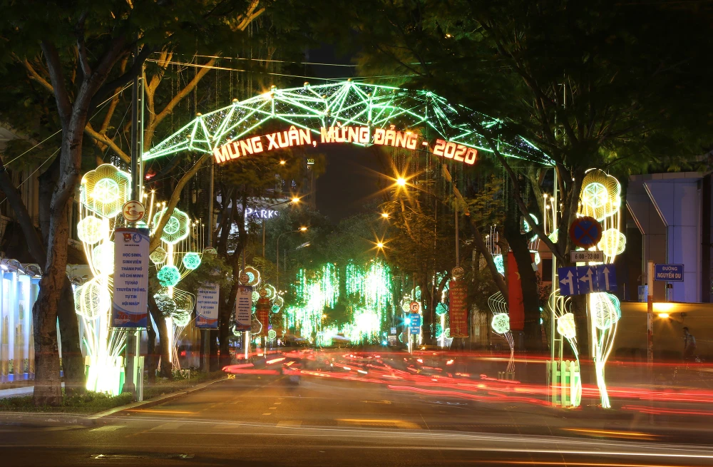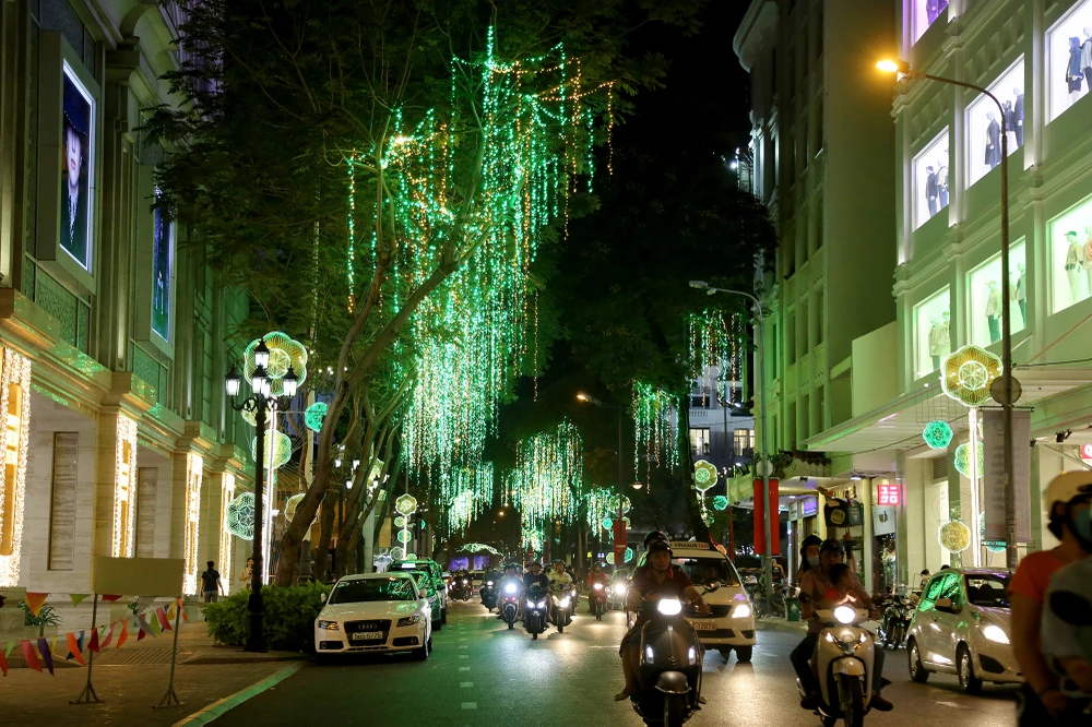 Đường Lê Duẩn (quận 1) khoác lên mình chiếc áo mới với dàn đèn hoa rực rỡ.
