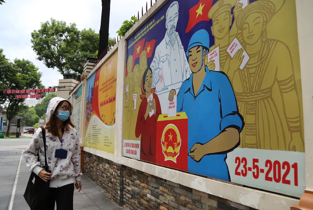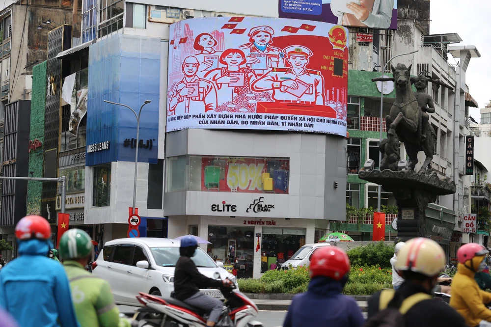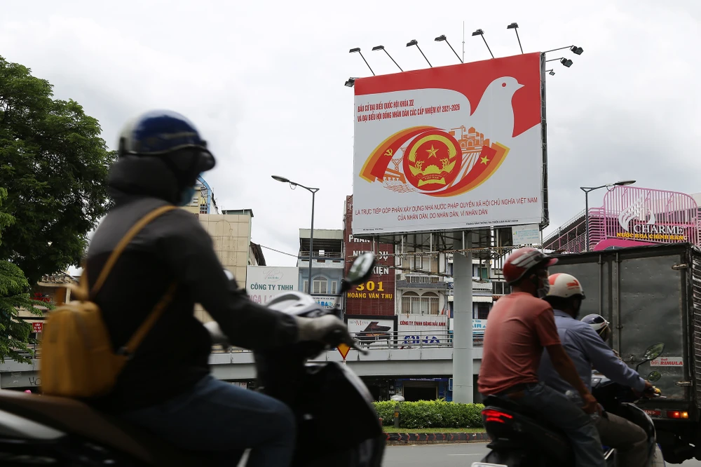 Áp phích cổ động bầu cử tại ngã sáu Phù Đổng (quận 1, TP.HCM).