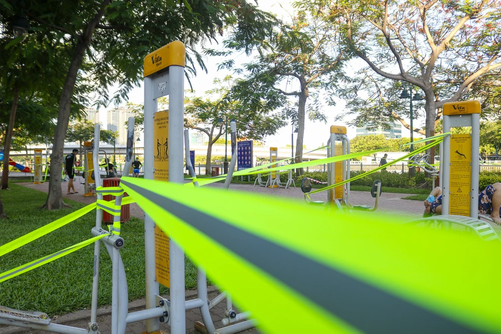 Một số tuyến đường như Cộng Hòa, Trường Chinh... thông thoáng; một số công viên, khuôn viên tập thể dục được giăng giây để tránh việc người dân tụ tập.