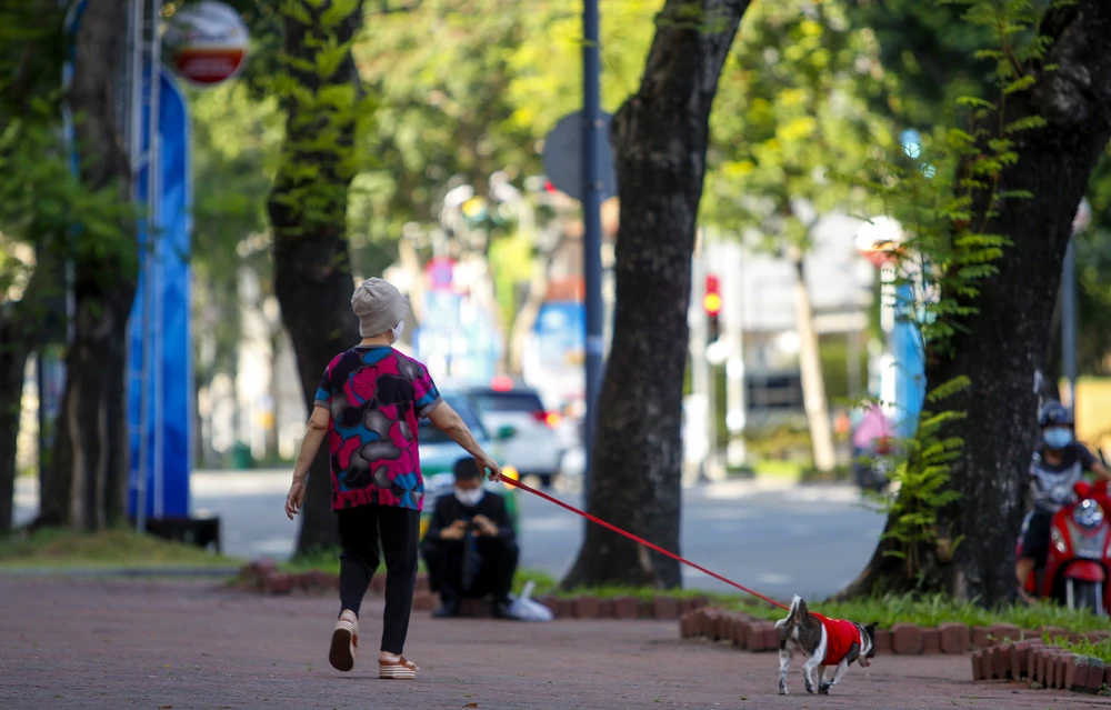 Dọc đường Lê Duẩn, xe cộ đã bắt đầu trở nên vắng vẻ vào buổi chiều ngày 30-5, chỉ vài người đi dạo trên vẻ hè.