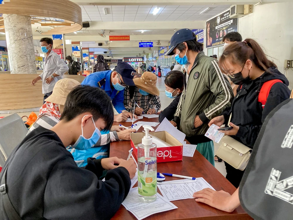 Tại Bến xe miền Đông, đông hành khách, học sinh, sinh viên mua vé về quê.