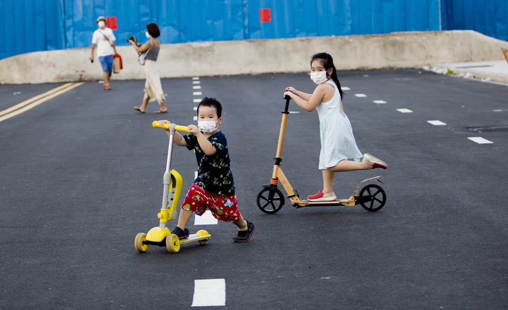 Hai chị em bé Minh Anh được cha mẹ đưa để đây để thư giãn cuối, tuần. Nghe tin giãn cách xã hội, cha của hai bé là anh Đỗ Lệnh Duy (quận Bình Thạnh) cho biết: Sau hôm nay, gia đình sẽ hạn chế ra đường