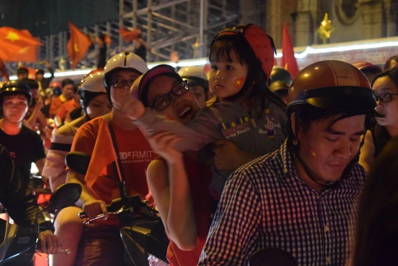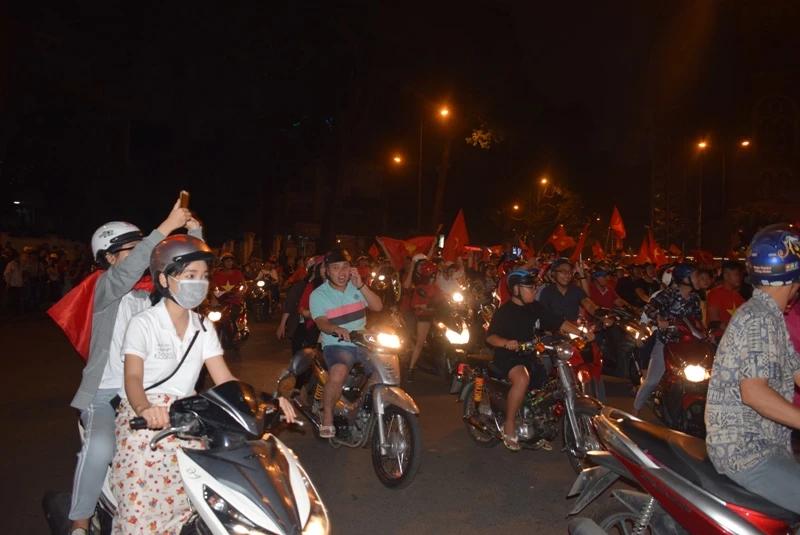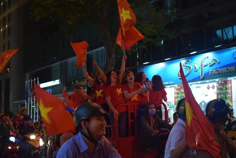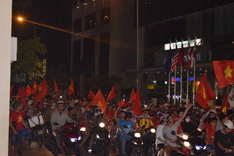 Những ngả đường trung tâm TP.HCM: Lê Duẩn, Nguyễn Thị Minh Khai, Cách Mạng Tháng Tám… nhanh chóng chật cứng sau trận đấu. Cờ Tổ quốc tung bay khắp những con đường, ngõ hẻm. Hàng triệu người đổ ra đường hô vang: “Việt Nam vô địch”, “Việt Nam chiến thắng!”…