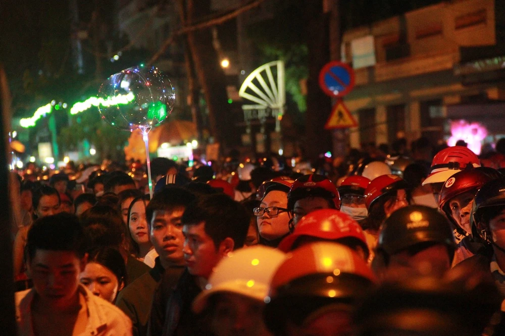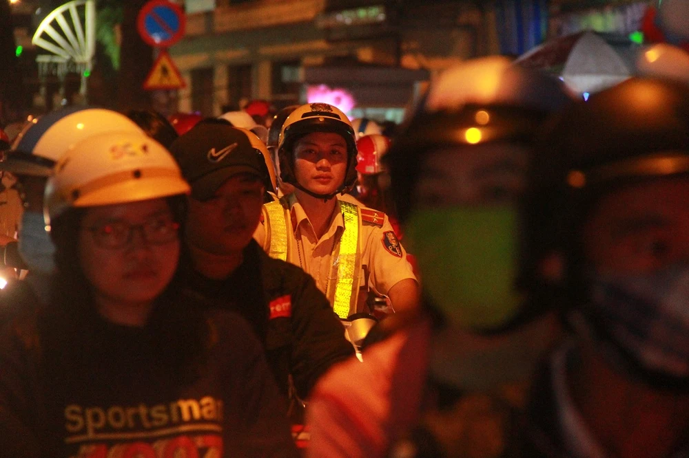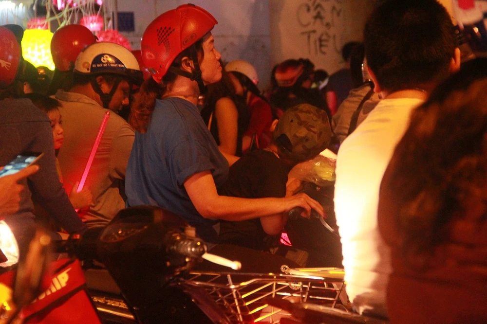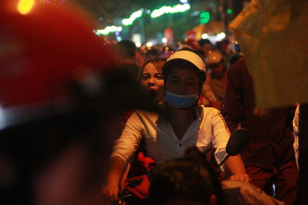 Đến 22 giờ đêm, đoạn đường Phạm Thế Hiển vẫn kẹt cứng vì lượng người đổ về khu vực xóm đạo càng nhiều.