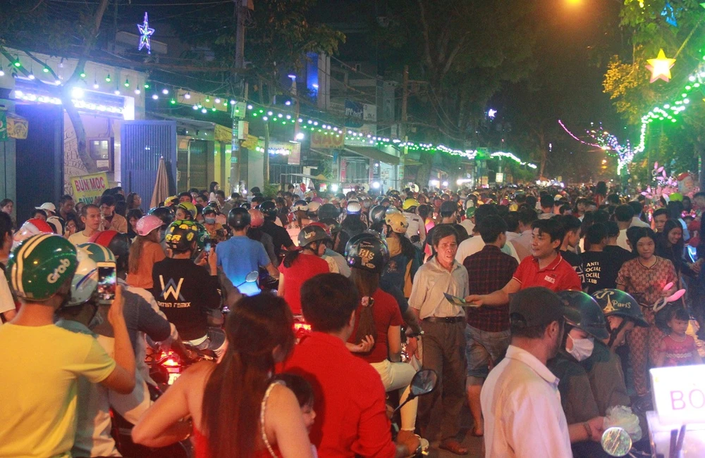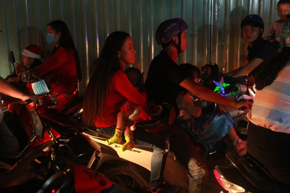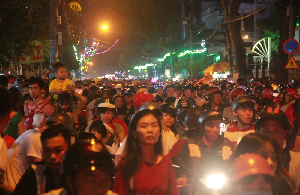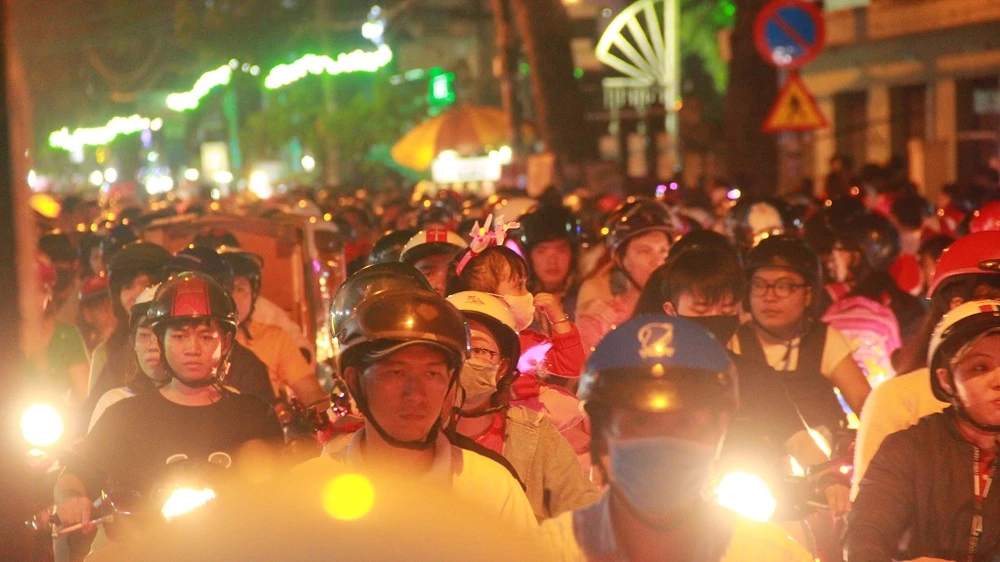 Tối 24-12, hàng nghìn người dân ở TP.HCM đã đổ về các Nhà thờ, điểm vui chơi ở trung tâm thành phố khiến một số tuyến đường kẹt cứng.