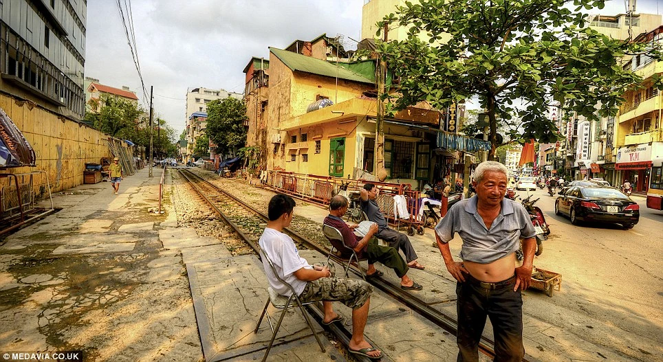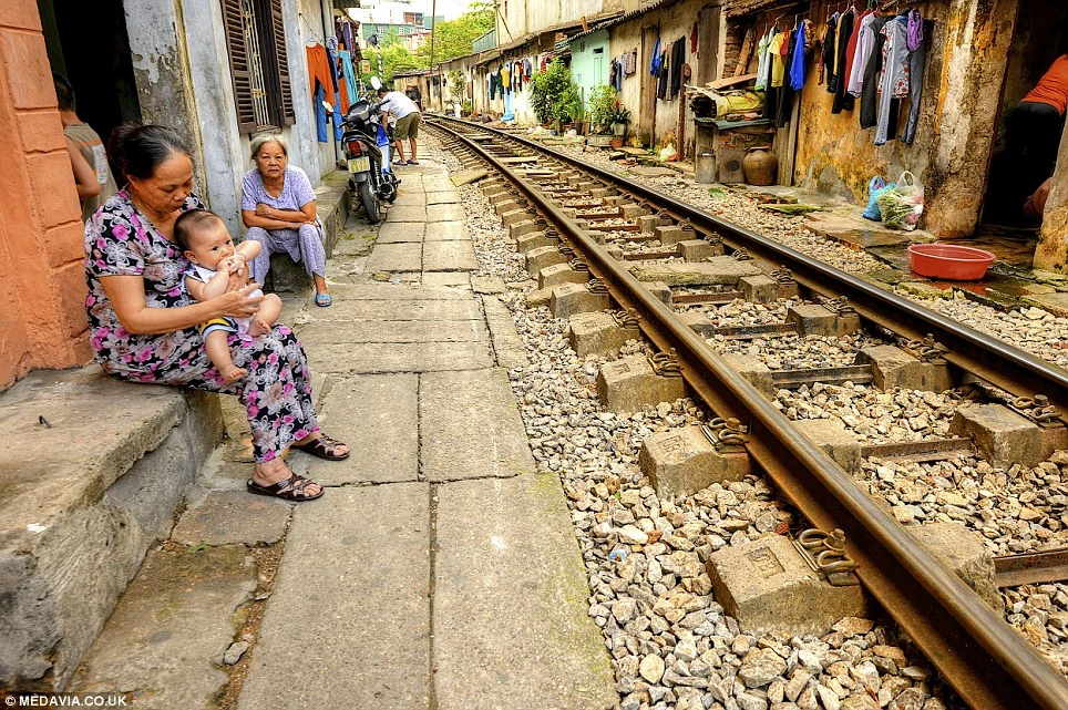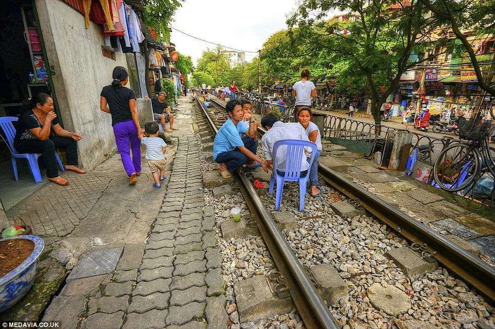 Sinh hoạt vui đùa ngay sát đường tàu chạy