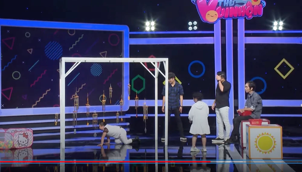 Sau khi nghe MC tuyên bố thể lệ vòng thi đầu tiên, Dương Thanh Vàng tranh thủ cơ hội “lừa con nít”: “Chút hồi các con đừng có bấm chuông, các con mà bấm chuông là bị trừ 5 điểm đó”.