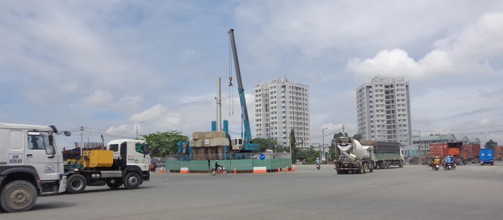 Vòng xoay Mỹ Thủy cũng không nghỉ, đanng gấp rút thi công hạng mục hầm chui và cầu vượt. Theo Thiếu tá Lâm Quang Quốc, Đội trưởng Đội CSGT Cát Lái, cán bộ, chiến sĩ của đội phải trực 24/24 giờ để bảo đảm an toàn giao thông qua nút giao và an toàn công trình.