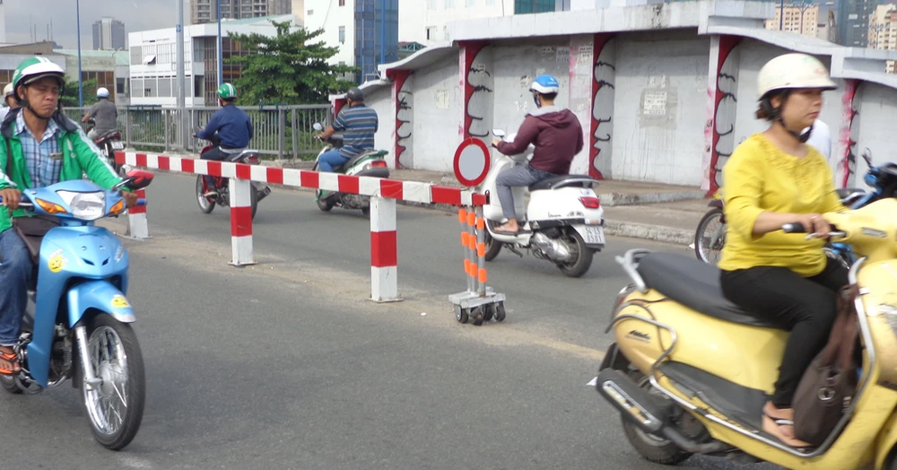 7 giờ 30 sáng, dải phân cách cơ động giữa cầu Chữ Y không phải đóng lại như mọi ngày. Các dòng xe rẽ trái thoải mái.