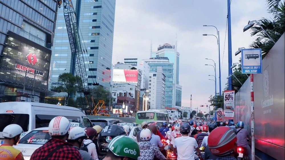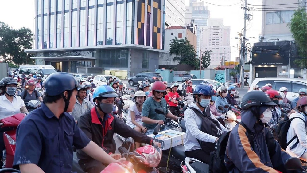Khoảng 17h30 ngày 31-5, trên đường Tôn Đức Thắng hướng từ bến Bạch Đằng đến nút giao Nguyễn Hữu Cảnh - Tôn Đức Thắng rơi vào tình trạng kẹt xe nghiêm trọng.