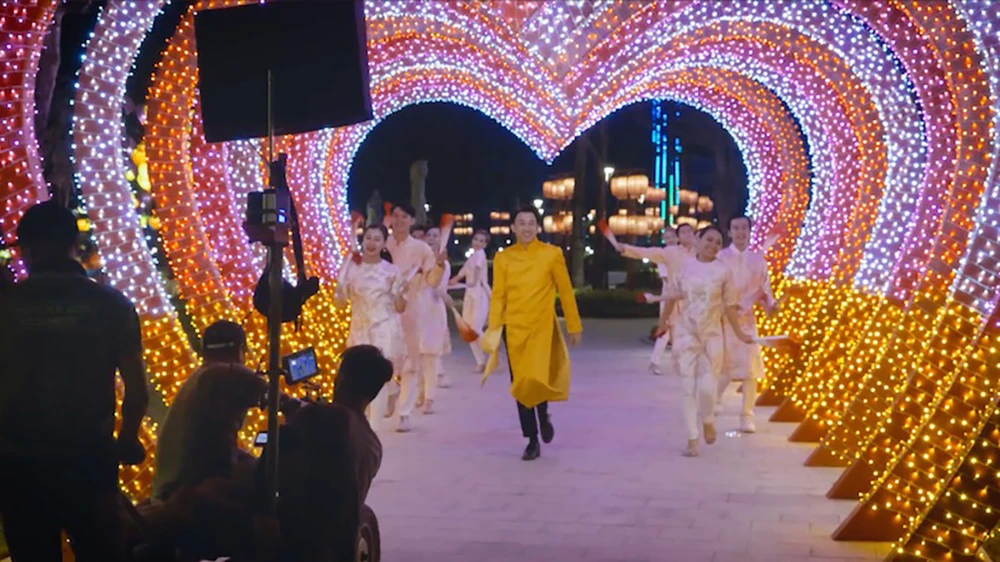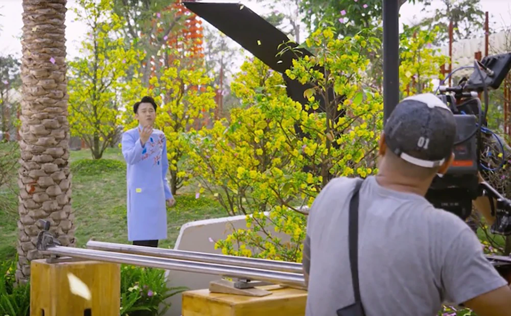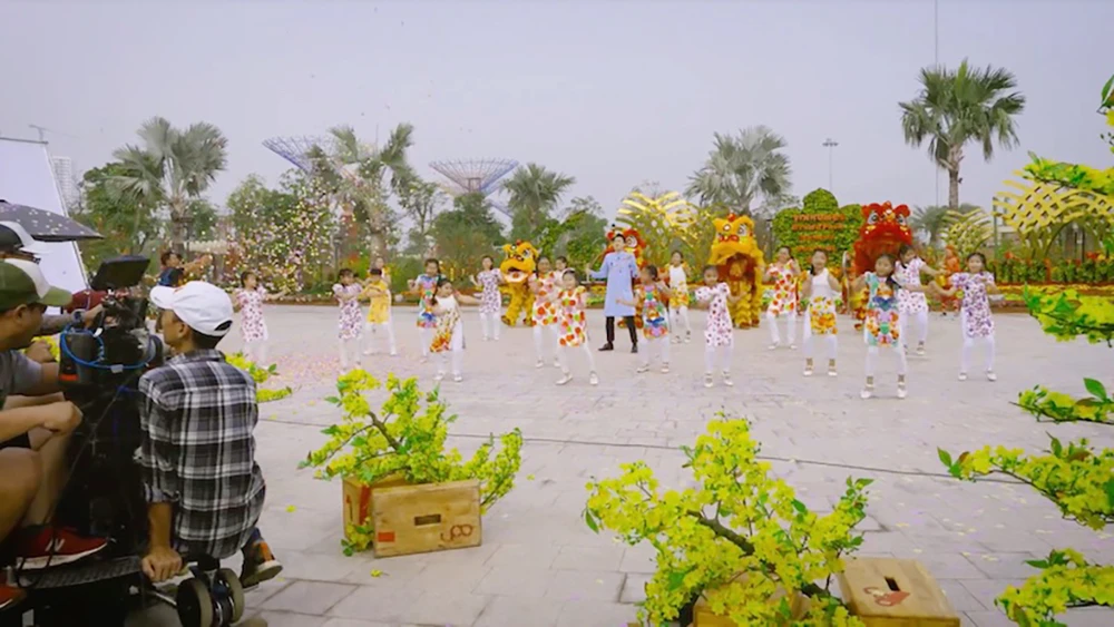 Cảnh quay ấn tượng và tốn nhiều thời gian nhất của ekip là lúc Dương Triệu Vũ bay trên khinh khí cầu cao cách hơn 50 m so với mặt đất để ngắm nhìn Sài Gòn và Công viên Ánh sáng được dàn dựng công phu bởi các thảm hoa rực rỡ, tràn ngập sắc xuân