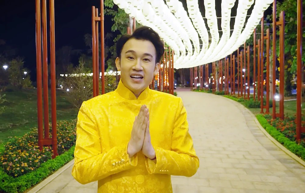 Dương Triệu Vũ đứng dưới con đường với hơn 2.000 chiếc lồng đèn lung linh và gửi lời cảm ơn đến toàn bộ ekip đã hoạt động hết công suất để cho ra đời siêu phẩm MV “Tết vạn lộc phúc an" vô cùng ưng ý
