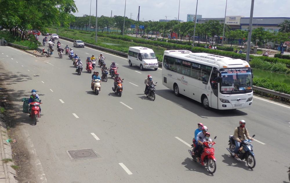 Cửa ngõ phía Tây TP, đoạn quốc lộ 1 từ vòng xoay An Lạc đến cầu đi bộ số 1 có khá nhiều xe máy, xe ô tô khách lưu thông nhưng không có các loại xe tải hoạt động trong ngày 2-9 nên mặt đường khá thông thoáng