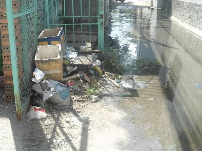 Gần cống thoát nước còn có cả những bãi rớn lớn tràn ra đường gây mất vệ sinh, là mầm mống sinh muỗi gây bệnh cho người dân.