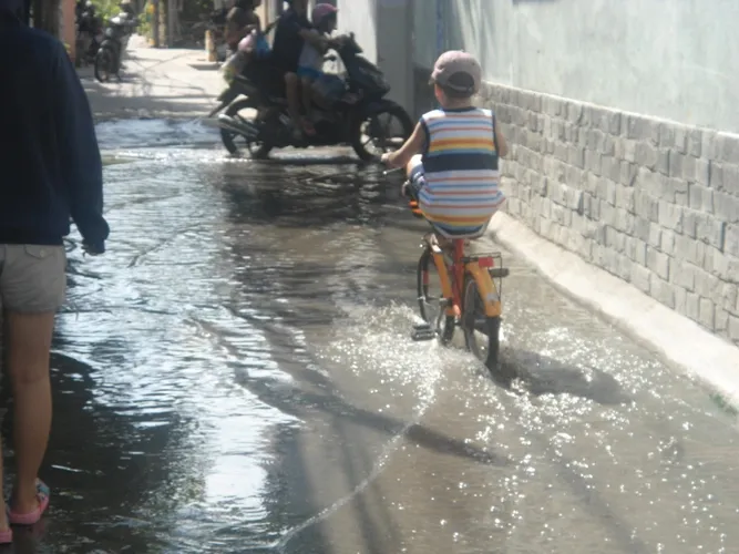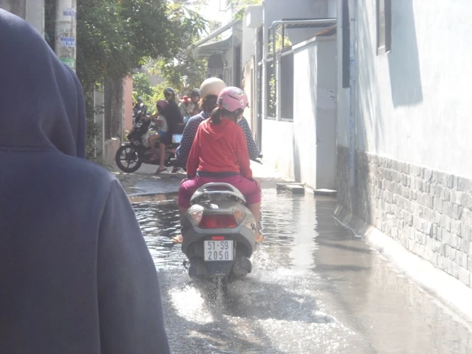 Bạn Dương Thanh Hằng thuê trọ trong đoạn đường này cho biết thường đi bộ ra chợ qua đoạn này rất khó khăn: “Nước ngập lên ướt hết chân mà còn là nước cống rất bẩn, bữa nay còn bốc mùi thối, đi ít bữa chắc chân bị ghẻ cũng không chừng” – Hằng nói.
