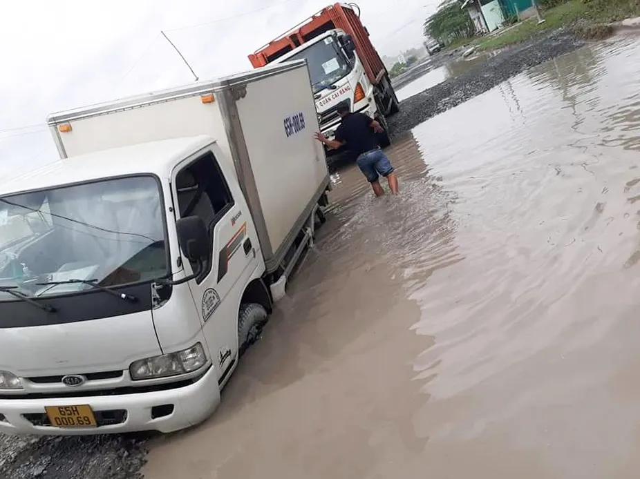 “Xe tải chở hàng vào bị vướng ổ voi nên phải thuê mướn xe cẩu, ngày hôm qua có một xe container chở hàng nhưng do đường xấu sắp lật phải thuê cứu hộ. Hiện giờ chúng tôi rất lo lắng vì tình trạng mặt đường như thế này không biết làm sao xuất hàng được, sẽ ảnh hưởng đến kinh doanh của DN, đến cuộc sống của người dân” - ông Minh nói.