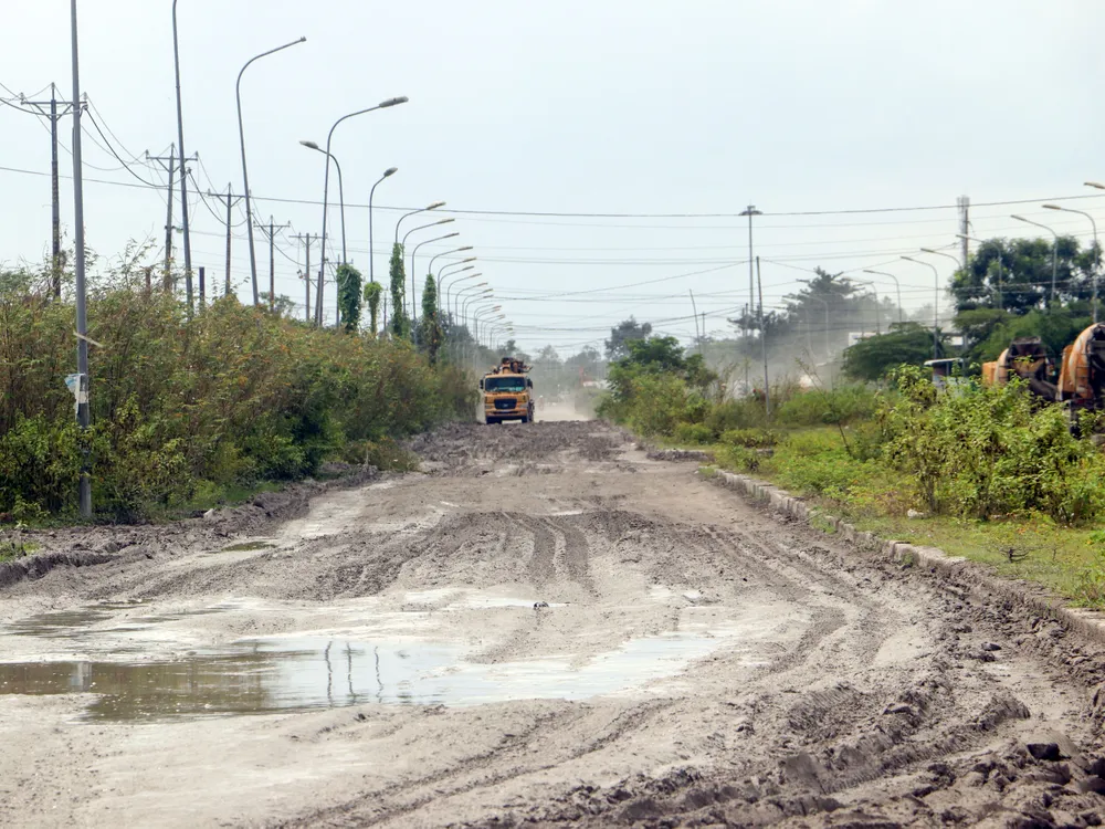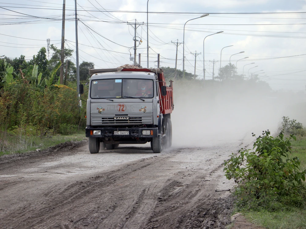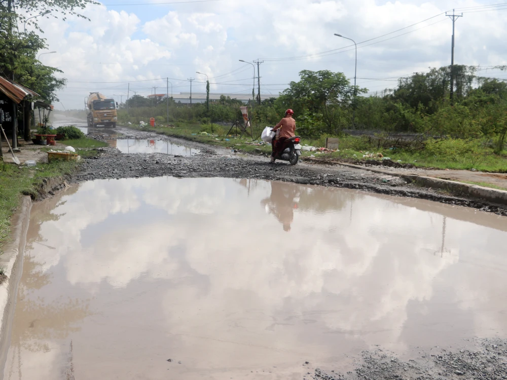 Ngày 29-10, ghi nhận thực tế, tuyến đường này đã xuống cấp nhiều năm nay nhưng chưa được khắc phục triệt để, chỉ tổ chức dặm vá, sửa chữa nhỏ nên đường xuống cấp ngày càng trầm trọng hơn. Tình trạng mưa thì lầy, nắng thì bụi khiến đi lại của người dân và lưu thông của DN rất khó khăn.