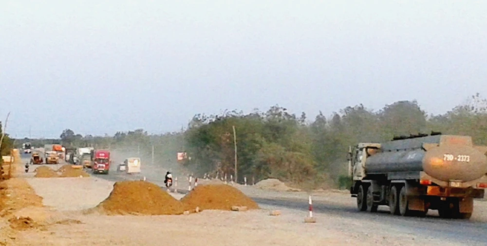 Ngày 13-2 (25 tháng chạp), có mặt trên chuyến xe tuyến Sài Gòn-Bình Định, PVPháp Luật TP.HCM đã chứng kiến hiện trường ngổn ngang đất đá, lô cốt, cọc xi măng trên từng cây số trên quốc lộ 1A.