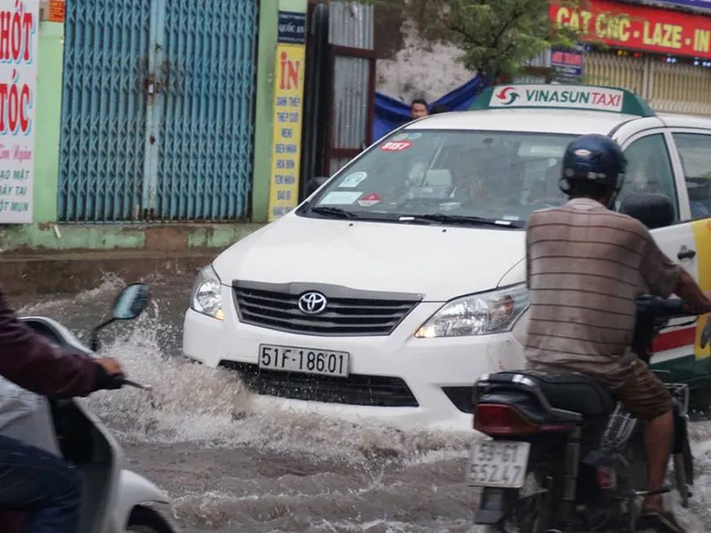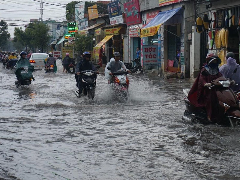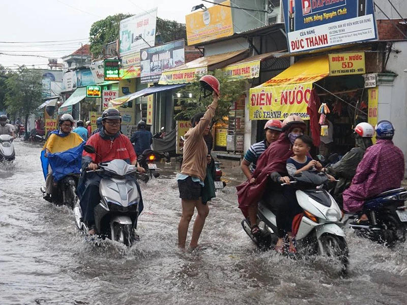 Tại đường song hành quốc lộ 22, đường Đông Hưng Thuận 2, đường ĐHT 42… (quận 12) ngập nước cục bộ, giao thông qua khu vực gặp nhiều khó khăn.