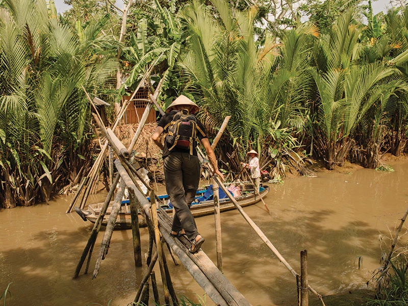 Chuyến xe cuối năm, tài xế chọn đi vào những con đường nhỏ nhưng vắng xe hơn để tránh kẹt. Những con đường khiêm tốn cạnh bờ sông, những con sông bằng lặng, chia nước cho những dòng kênh nhỏ, đặc sản của miền Tây sông nước. Những làng xóm bên đường san sát, trước nhà mấy chậu cúc vàng mua trưng tết nằm yên ngó nhau. Thế nào đi được một đoạn bất kỳ cũng sẽ gặp căn nhà với khoảng sân lát gạch tàu, trong đó hoặc là các chậu mai kiểng đã chín vàng hoặc là một cây mai rừng cắm chân vào đất, nhánh xòe ra che mát một khoảnh lộ, mấy cánh vàng rụng vương dưới đường như những con bướm thiêm thiếp đậu lại nghỉ cánh đôi lúc, rồi không biết khi nào sẽ bất giác bay lên nhờ một con gió lành của mùa xuân.