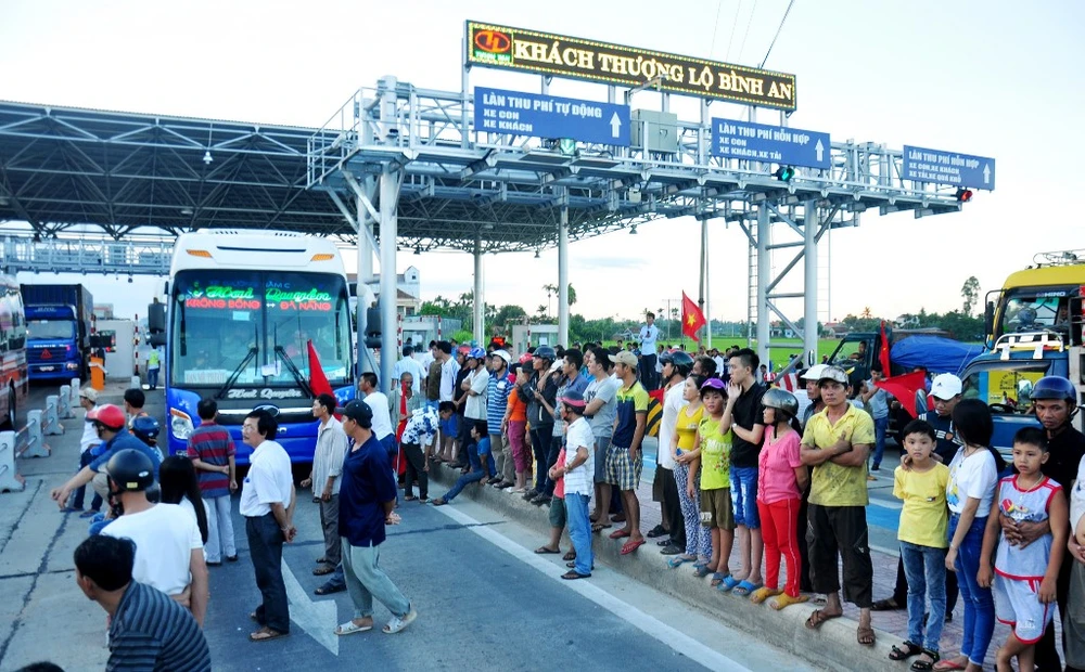 Tháng 8-2016, người xã Nghĩa Phương,Tư Nghĩa, Quảng Ngãi) đã chặn xe tại Trạm thu phí BOT Thiên Tân vì cho rằng chi phí đi qua trạm là quá cao. Ảnh: Zing
