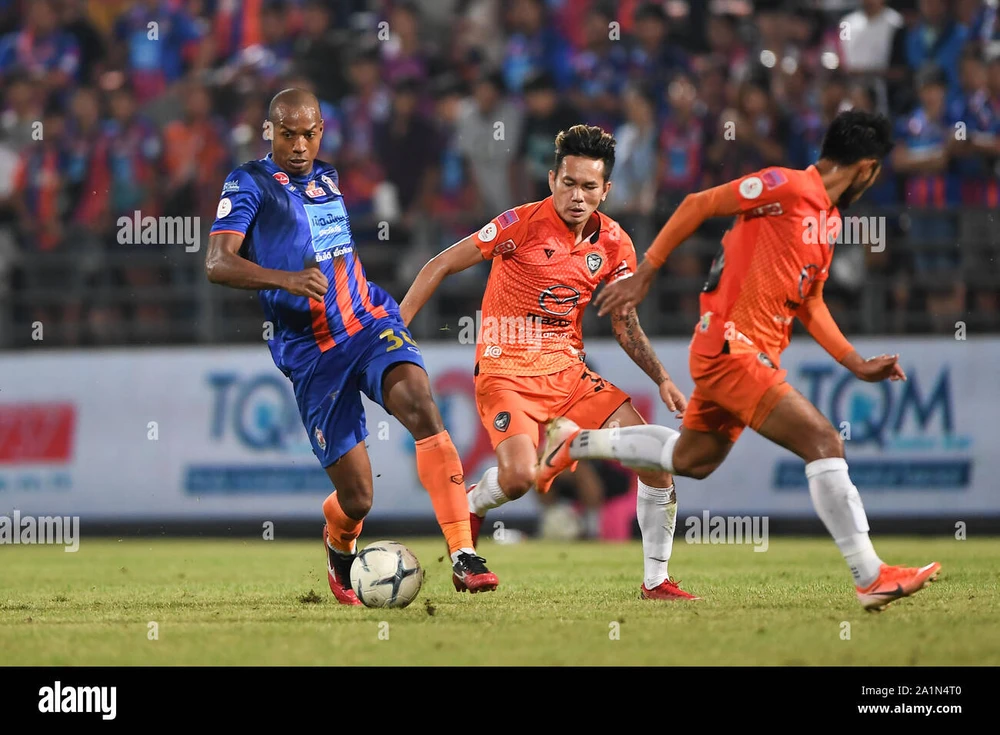 Thai Port (xanh) sau trận thua Nakhon Ratchasima, Dusit...đã lùng bùng. Ảnh: B.P