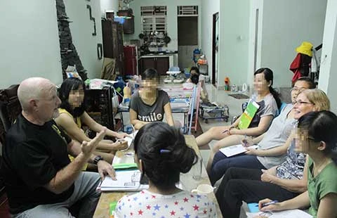 Ông Paul và vợ đang dạy tiếng Anh cho thành viên mái ấm Green Hope. Ảnh: H.LAN