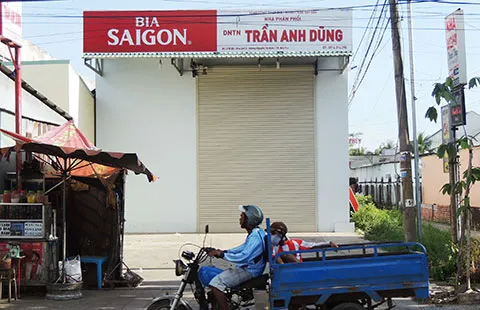 Trưa 26-11, nhà kho làm đại lý bia trên thửa đất 598B5 Nguyễn Thị Định, phường Phú Khương (TP Bến Tre) đang khóa trái cửa. Ảnh: T.PHÚC