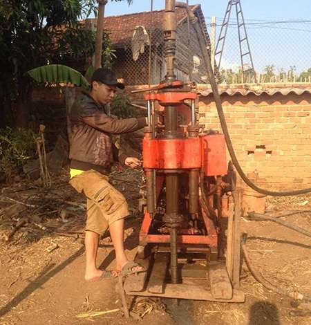 Máy khoan giếng ở các xã thuộc huyện Ea H’leo (Đắk Lắk) hoạt động hết công suất để chống hạn. Ảnh: H.PHƯỢNG