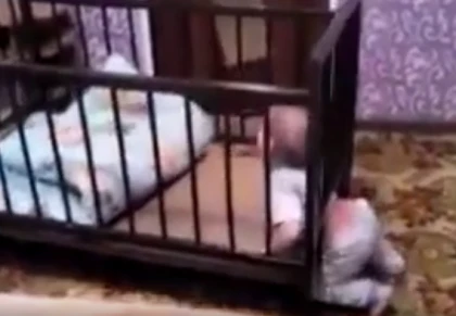 Bị nhốt trong chiếc giường nôi, bé đã sử dụng cách mà có lẽ bạn sẽ không nghĩ đến được. Bằng cách chui tọt xuống khe hở để dùng chân đẩy chiếc nôi tiến tới giường nệm. Bé đã dễ dàng trèo qua giường nệm để chơi đùa. >Xem video