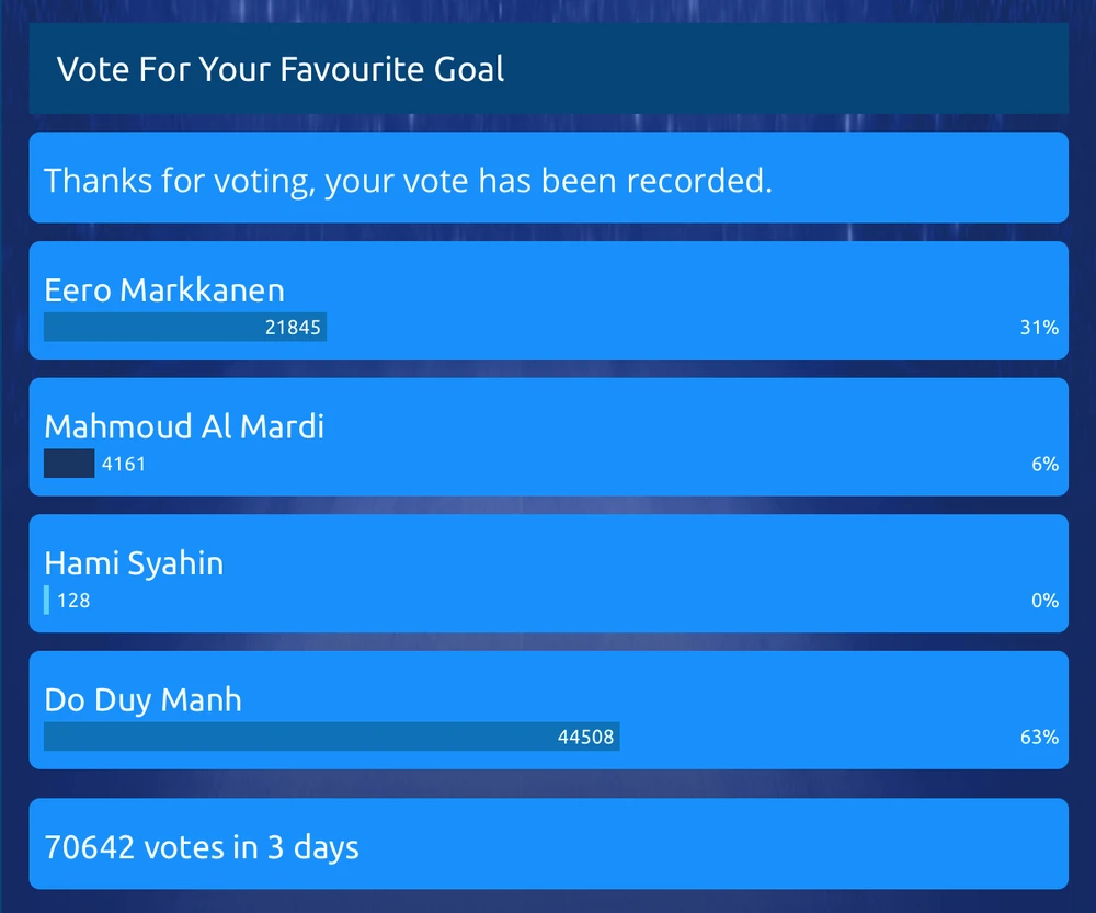 Trong tổng số 4 bàn thắng được AFC đề cử, “siêu phẩm” của Duy Mạnh nhận được 44.508 phiếu bầu chọn trực tuyến từ người hâm mộ. Chiến thắng 63% của Duy Mạnh bỏ xa pha làm bàn của Eero Markkanen (31%) xếp thứ hai, với số lượt bình chọn 21.845 lượt. Tổng cộng có 70.642 lượt bình chọn 4 bàn thắng trong vòng 3 ngày. Cuộc bình chọn kết thúc vào lúc 15 giờ ngày 2-3.
