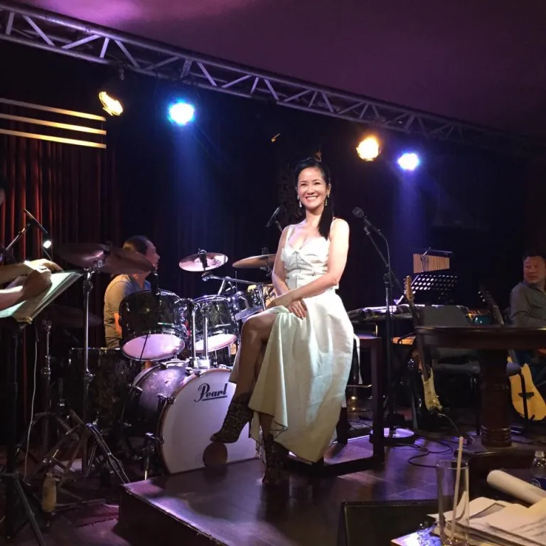 Ca sĩ Hồng Nhung trong phòng tập Duyên dáng Việt Nam.