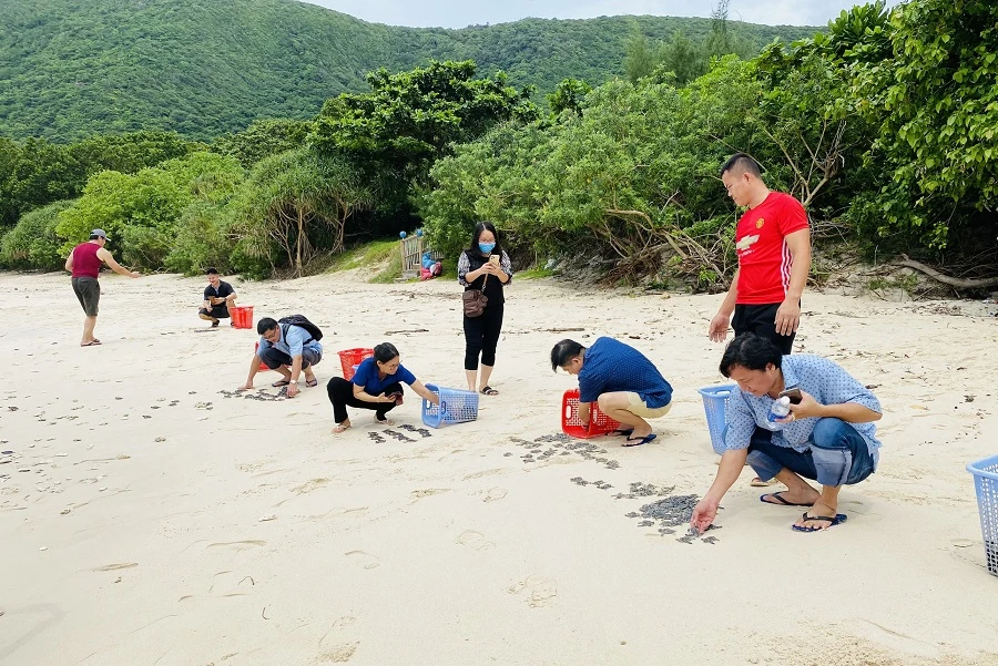 Thăm quan rùa đẻ là một trong các tour hấp dẫn du khách khi đến Côn Đảo. Ảnh: VQG (chụp trước thời điểm giãn cách xã hội vì dịch COVID-19)