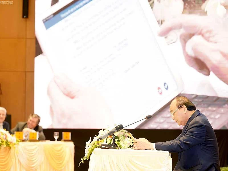 Sáng 24-6, Thủ tướng Chính phủ Nguyễn Xuân Phúc dự khai trương hệ thống thông tin phục vụ họp và xử lý công việc của Chính phủ (e-Cabinet).