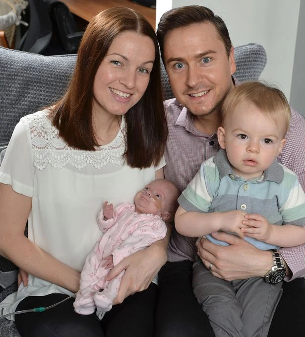 Gia đình Laura, Dave, bé Casey (áo hồng) và bé Arron hạnh phúc tại nhà riêng. Ảnh: MIRROR