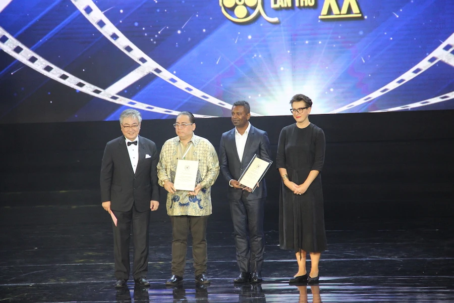 Trao giải cho đạo diễn phim Yellow Bird (Singapore) hạng mục Giải thưởng phim ASEAN. Ảnh: TÂM AN