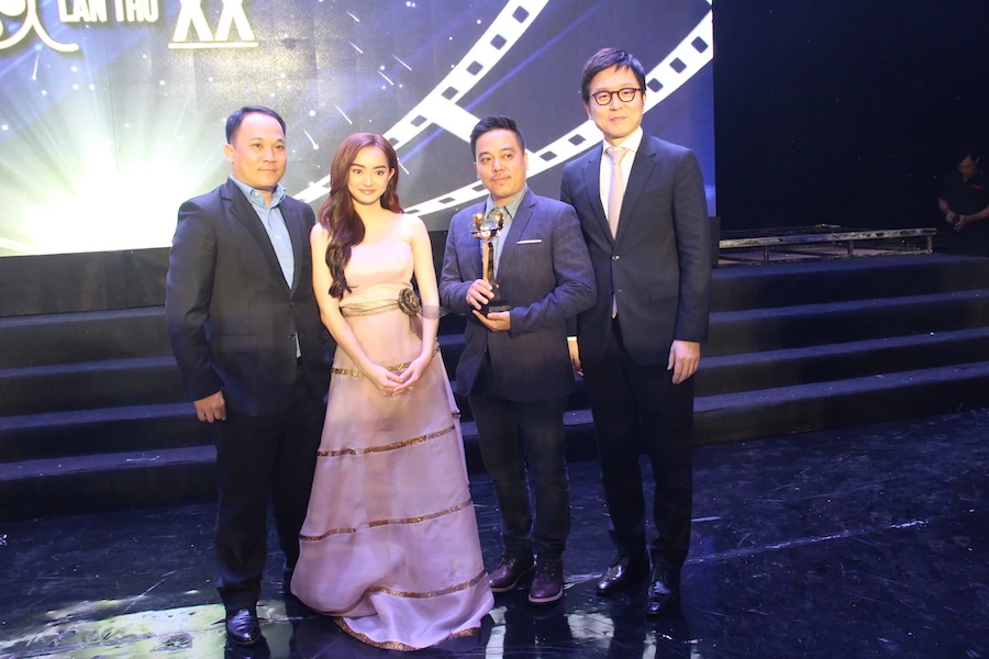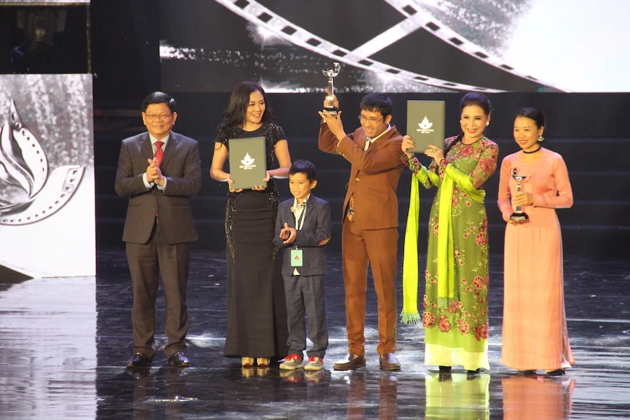 Đại diện đoàn làm phim Cô hầu gái và Cha cõng con nhận giải thưởng Bông sen bạc. Ảnh: TÂM AN