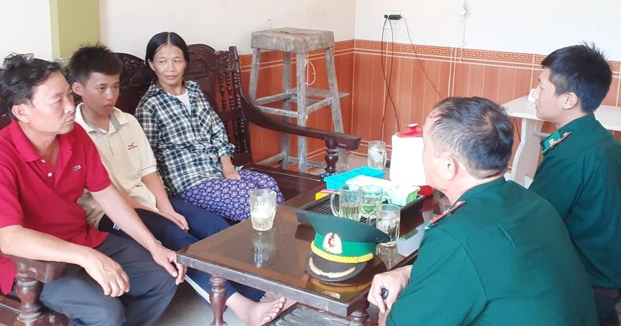 Bộ đội biên phòng Đồn biên phòng Quỳnh Thuận thăm hỏi, động viên em Cường.