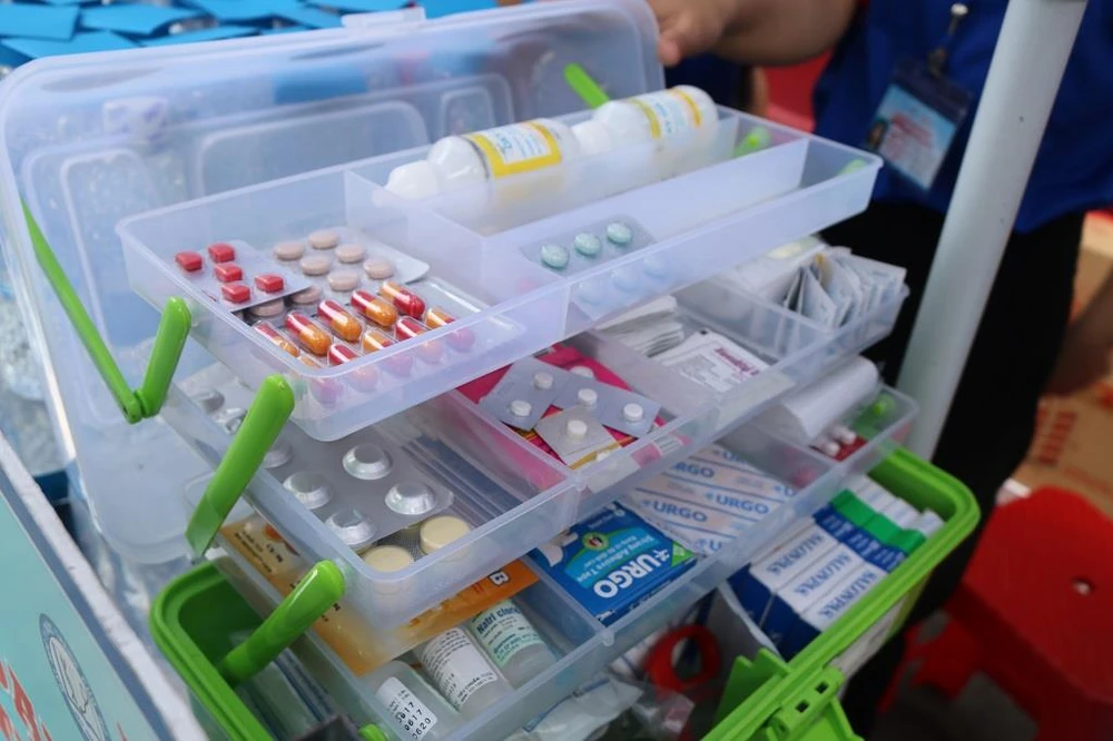 Để hỗ trợ tốt nhất cho các thí sinh, đội hình sinh viên tình nguyện ĐH Y Dược TP.HCM còn chuẩn bị một hộp thuốc nhỏ. Bên trong là các loại thuốc dùng để sơ cấp cứu ban đầu như bông băng, cao dán, các loại thuốc cơ bản…
