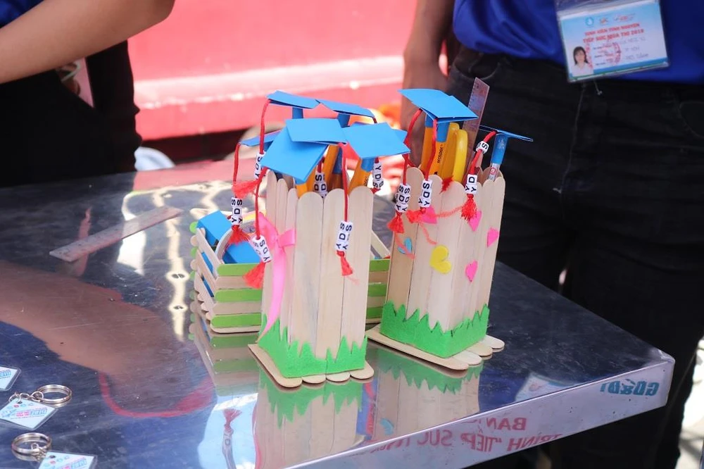 Ngoài ra, còn có có các món quà “handmade” để cổ vũ tinh thần thí sinh như móc khóa, tranh vẽ, bút chì