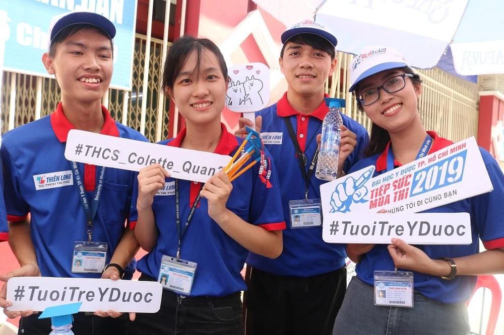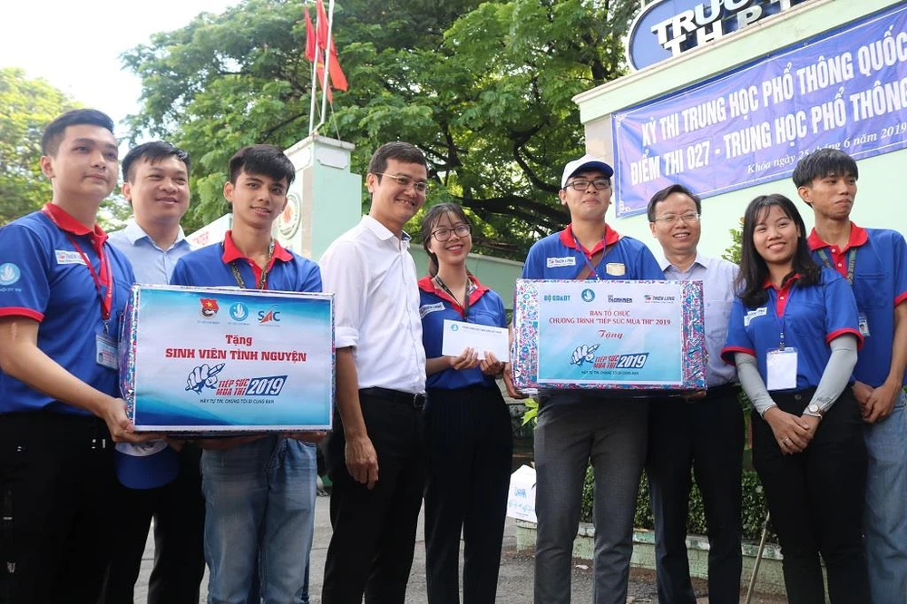 Vào sáng 25-6, Đoàn công tác Trung ương Đoàn Thanh niên – Trung ương Hội Sinh viên Việt Nam và Bộ GD & ĐT đã đến thăm, động viên tinh thần và tặng quà sinh viên tình nguyện “Tiếp sức mùa thi 2019” tại các điểm trực THPT Nguyễn Khuyến (quận 10) và THCS Colette (quận 3).