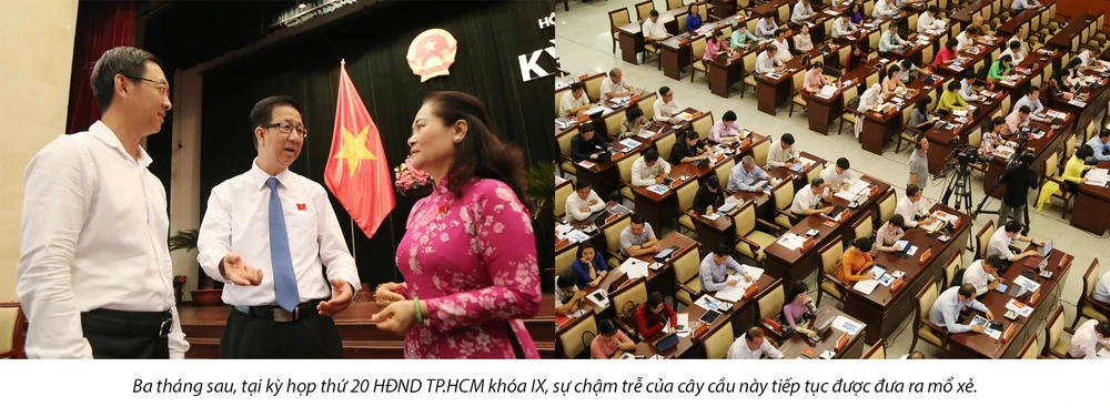Vụ việc không chỉ dừng lại ở buổi giám sát đó, ba tháng sau, tại kỳ họp thứ 20 HĐND TP.HCM khóa IX, sự chậm trễ của cây cầu này tiếp tục được đưa ra mổ xẻ.