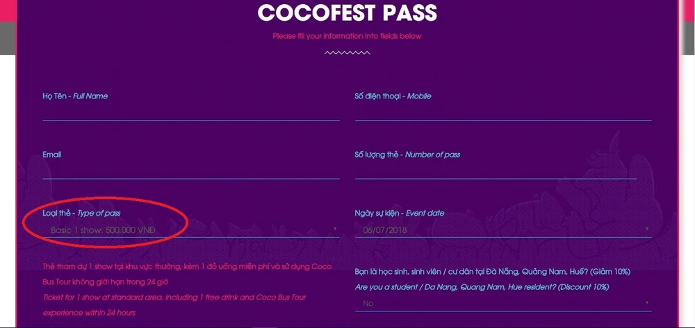 Hình ảnh trên website đặt vé chính thức của Cocofest 2018. Ảnh: TẤN VIỆT
