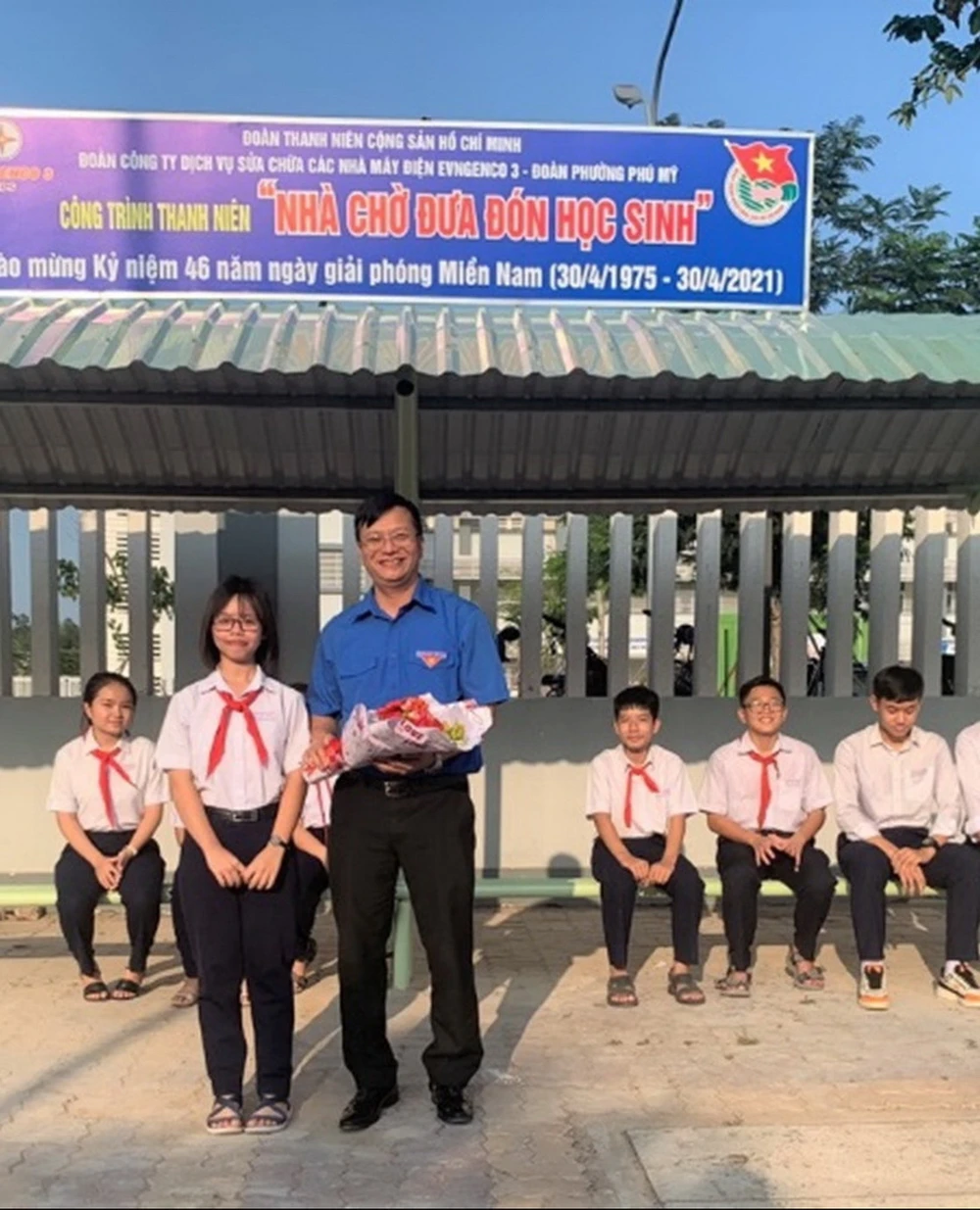 Mới đây, Ban chấp hành Liên chi đoàn Công ty EPS (thuộc Đoàn cơ sở Tổng Công ty Phát điện 3) phối hợp với Ban chấp hành Đoàn phường Phú Mỹ, thị xã Phú Mỹ, tỉnh Bà Rịa – Vũng Tàu, thực hiện bàn giao công trình thanh niên “Nhà chờ đưa đón học sinh” tại Trường THCS Võ Văn Kiệt.
